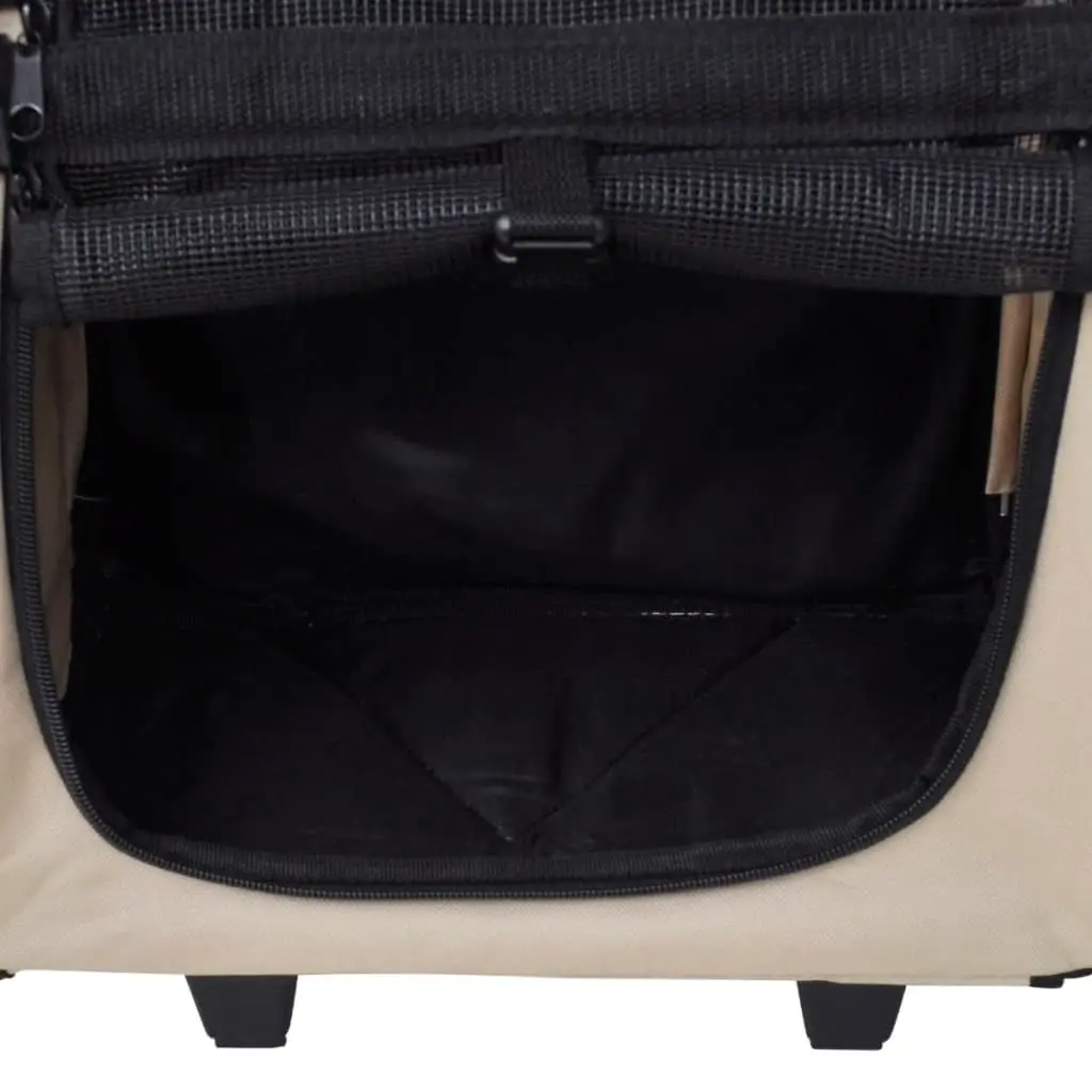 This pet trolley is light and well-ventilated, with strong mesh windows on three sides, which makes it a comfortable shelter for your furry friend. The zippered doors can be rolled up or down, which makes it easy for your pet to get in and out. This pet trolley also boasts 2 zippered storage pockets for carrying small items like toys, treats, etc.
